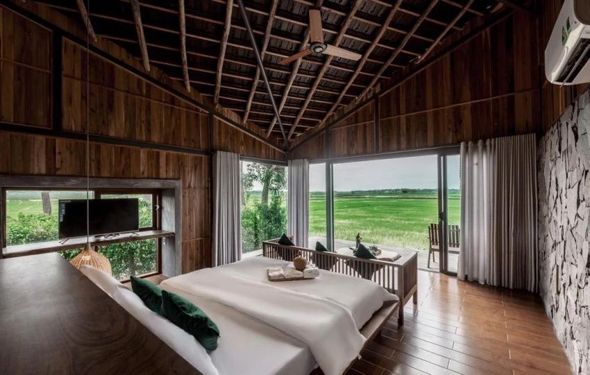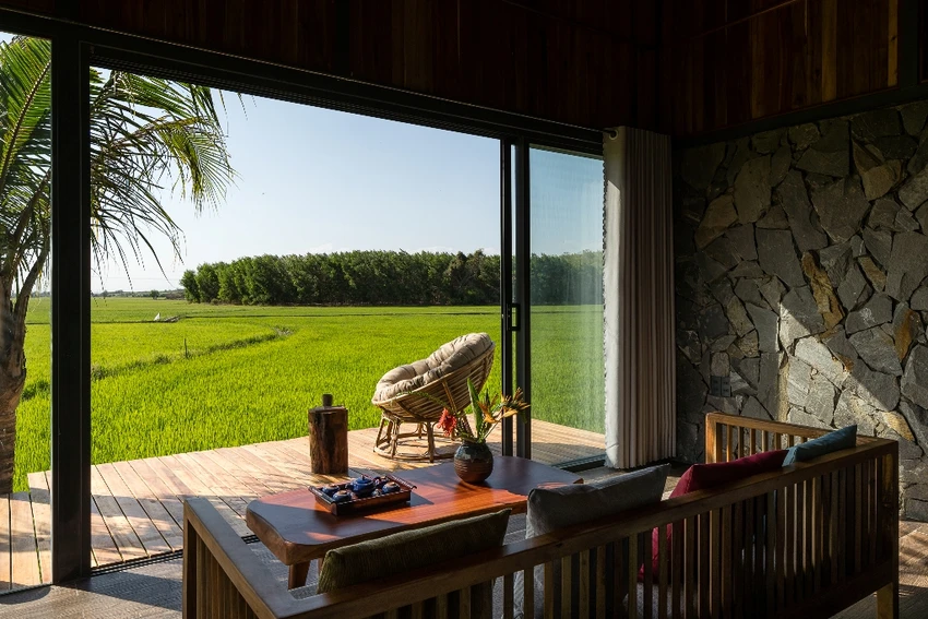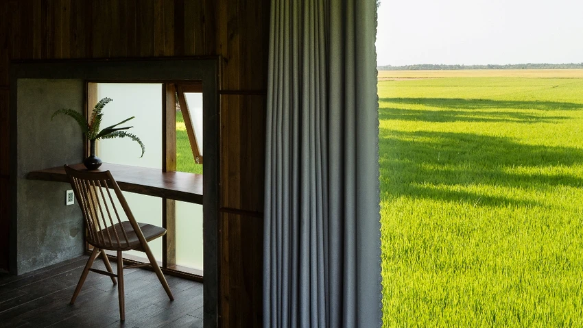 Đối với không gian hướng về phía đồng ruộng, còn gì tuyệt vời hơn là mỗi buổi sáng thức dậy hít hà mùi hương của lúa, tận hưởng những phút giây sảng khoái vô cùng.