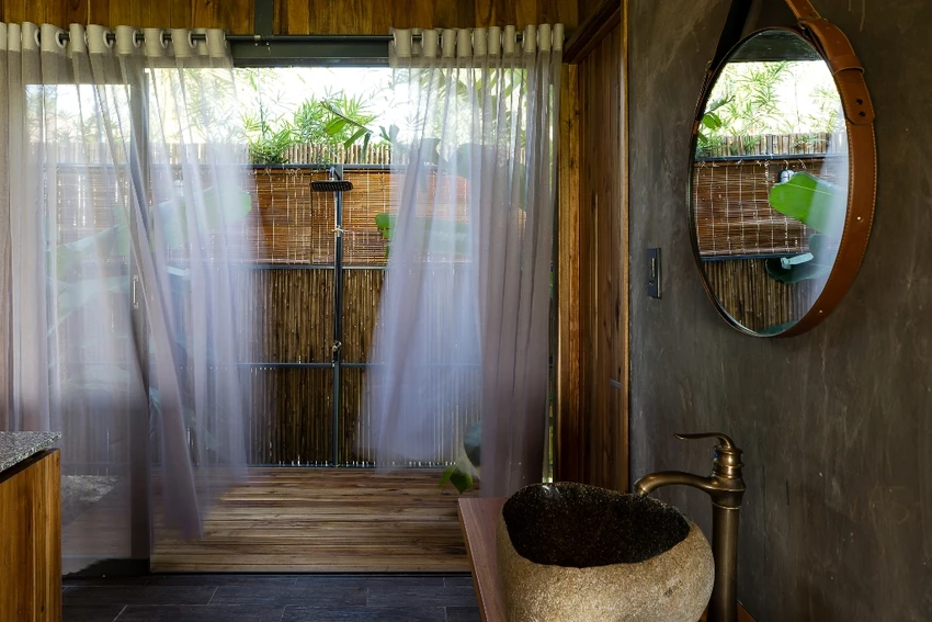 – Khu Bungalow song lập view đồng lúa được thiết kế sử dụng hướng không gian mở về phía đồng lúa. Phần mái cũng sử dụng hệ vì kèo sắt gỗ và phía trên lợp ngói được lấy cảm hứng từ hình ảnh cánh diều.